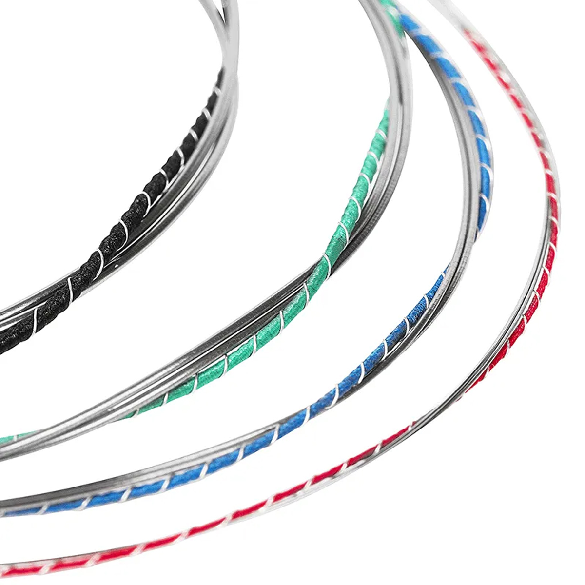• Dây A, D, G: Sử dụng lõi thép bện (Braided Steel Core) thay vì lõi thép đặc truyền thống. Cấu trúc này giúp dây mềm hơn, dễ bấm và tạo ra âm thanh có chiều sâu gần giống với dây lõi tổng hợp (synthetic core).